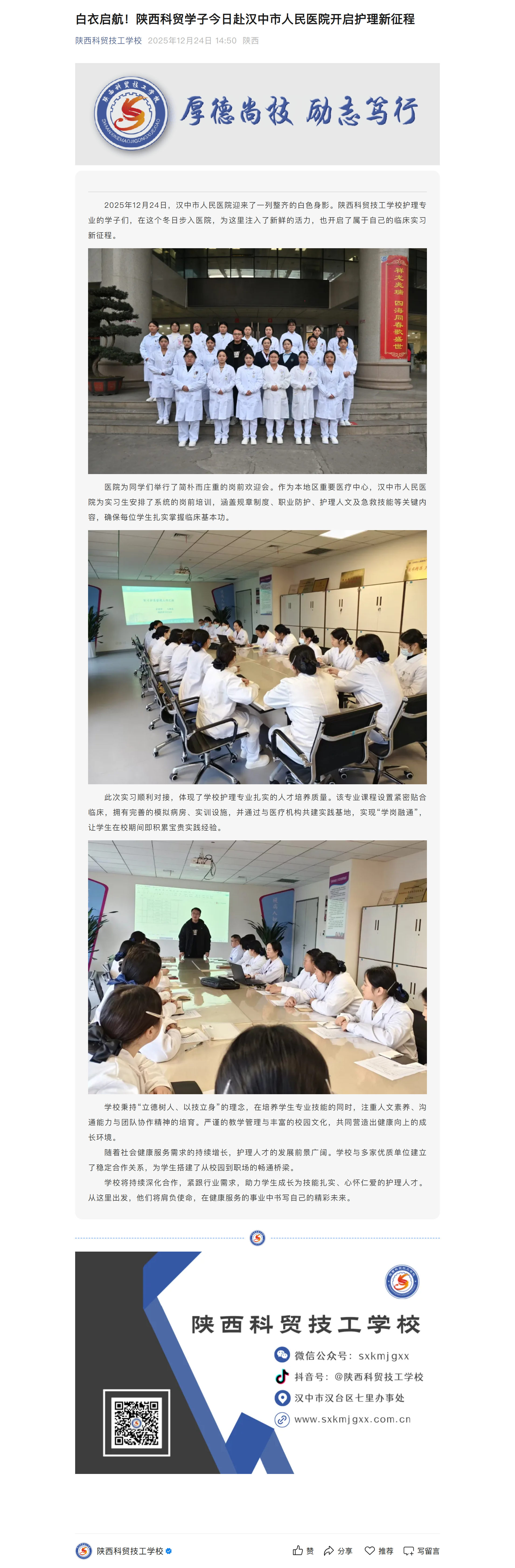 2. 白衣启航!陕西科贸学子今日赴汉中市人民医院开启护理新征程